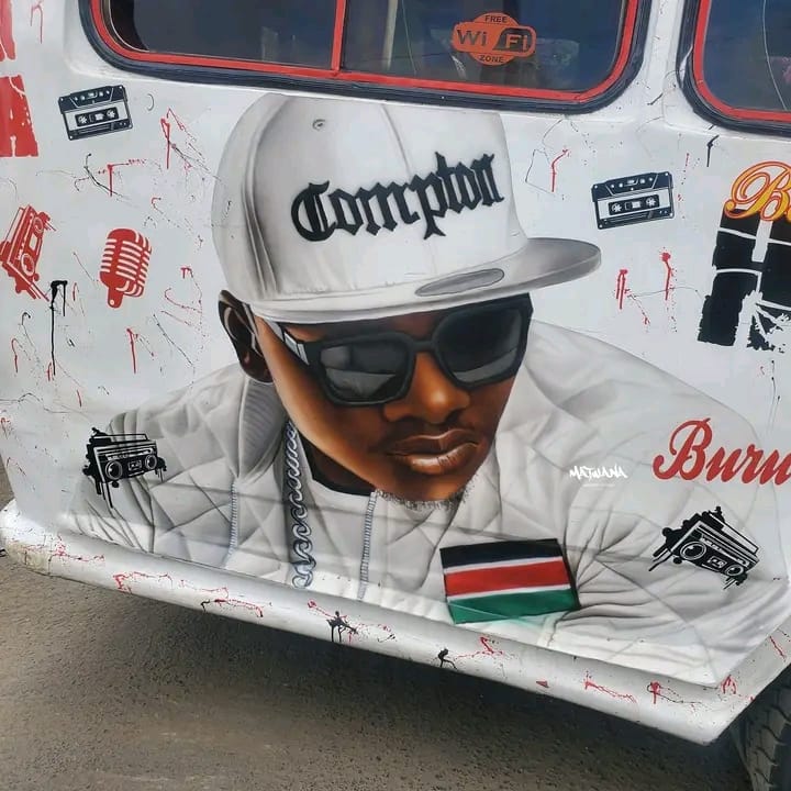 This became a normal practice over the years. Images of musicians, actors and at times historical figures would constantly appear pimped-out on the Matatus that seemed to only increase in numbers as the urban population increased. With the art still much reflective of the present times. In the political season, some Matatus exhibit faces of preferred candidates. In monumental times, some lean towards showcasing historical figures relevant to current happenings. And as expected, those with affinity for sport showcase their favourite sports clubs and athletes while those with affinity for music showcase their favourite artists and songs.
